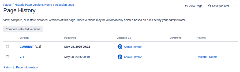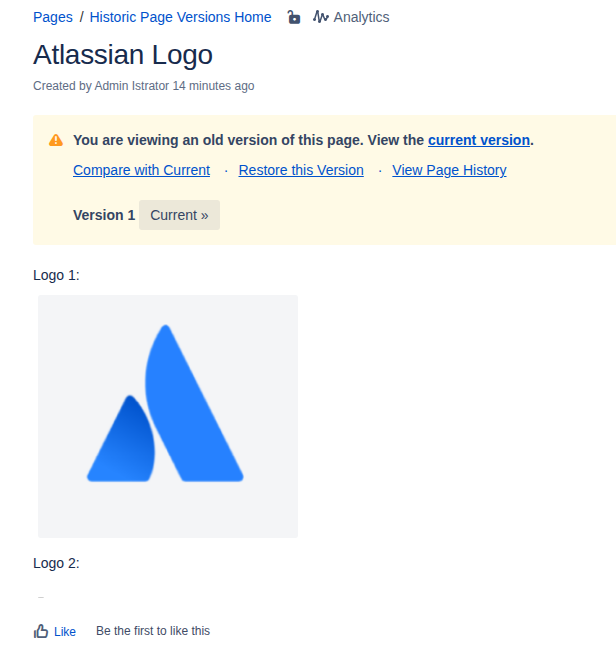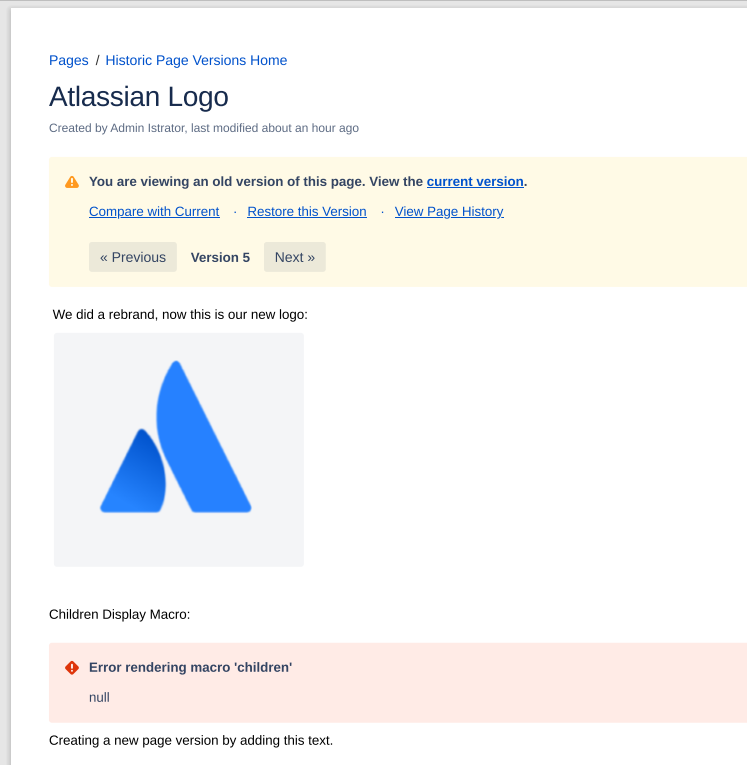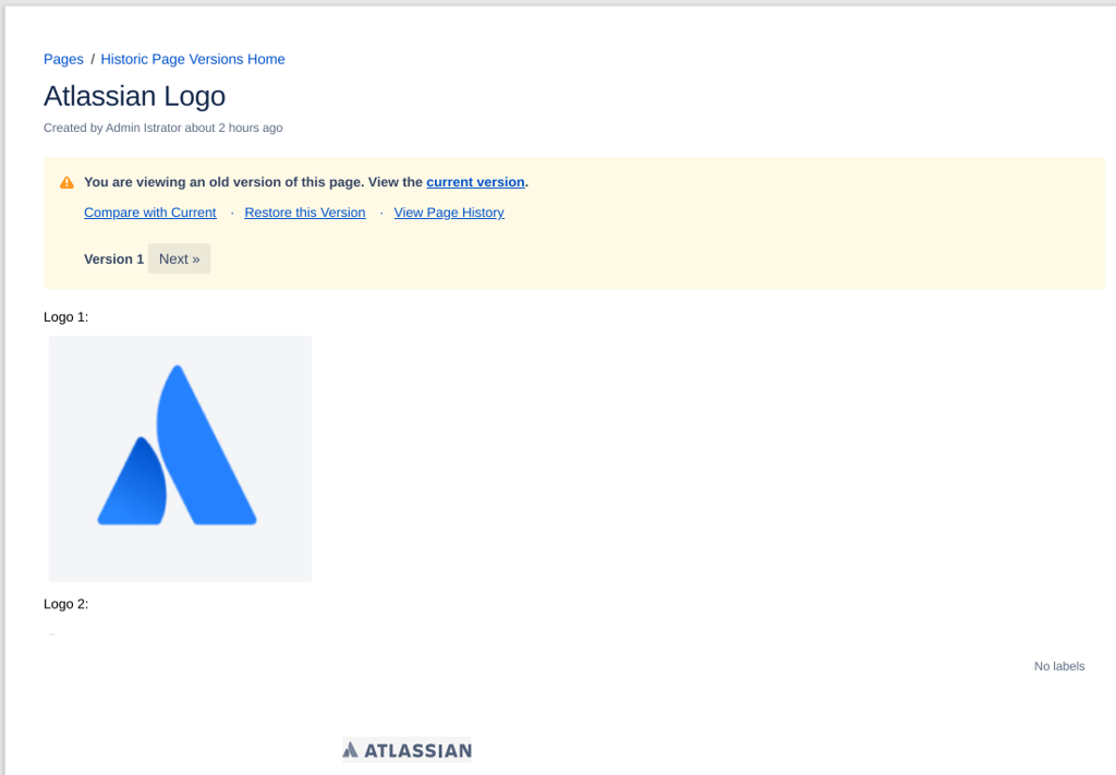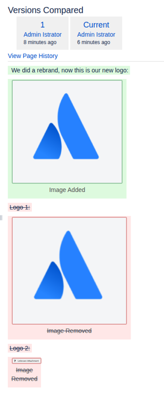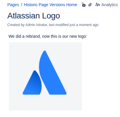 Now let’s assume Atlassian rebrands and the page is updated with the new logo (creating a new page version):