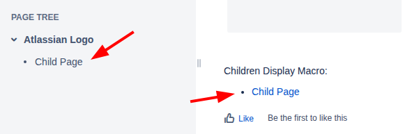 Here’s the built-in Children Display macro added to our sample page, correctly showing one child page: