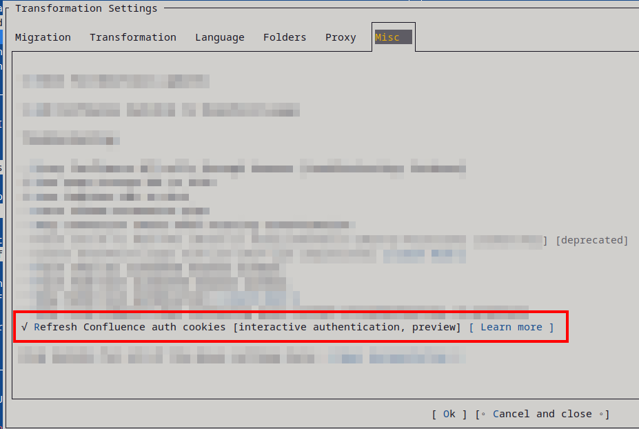 Since WikiTraccs v1.32.2, cookie refresh is supported. This feature is optional and needs to be turned on when required. Note that over a period of about 3 years while serving hundreds of customers, there was only one case where such a refresh caused issues due to sessions timing out during the migration. That’s why the setting is considered optional and located in the Misc section of the Transformation Settings dialog: