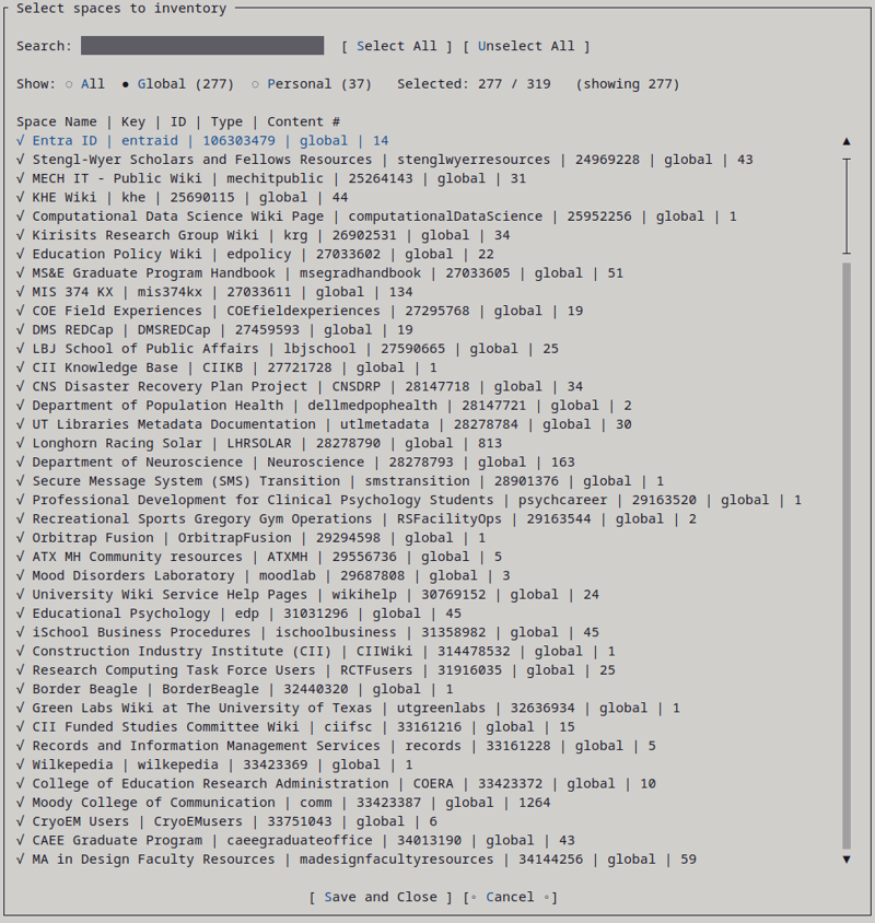 - 4.6.2: Confluence Space Inventory