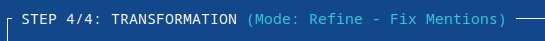 Note that WikiTraccs highlights the chosen mode (so you can be sure it’s the right one), here Refine - Fix Mentions (since “Fix” implies logging, the label omits “Log Mentions”):