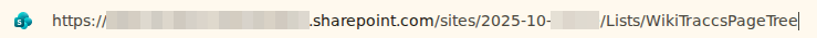 Enter the hierarchy list URL (<SITEURL>/Lists/WikiTraccsPageTree) in the browser address bar; press Return